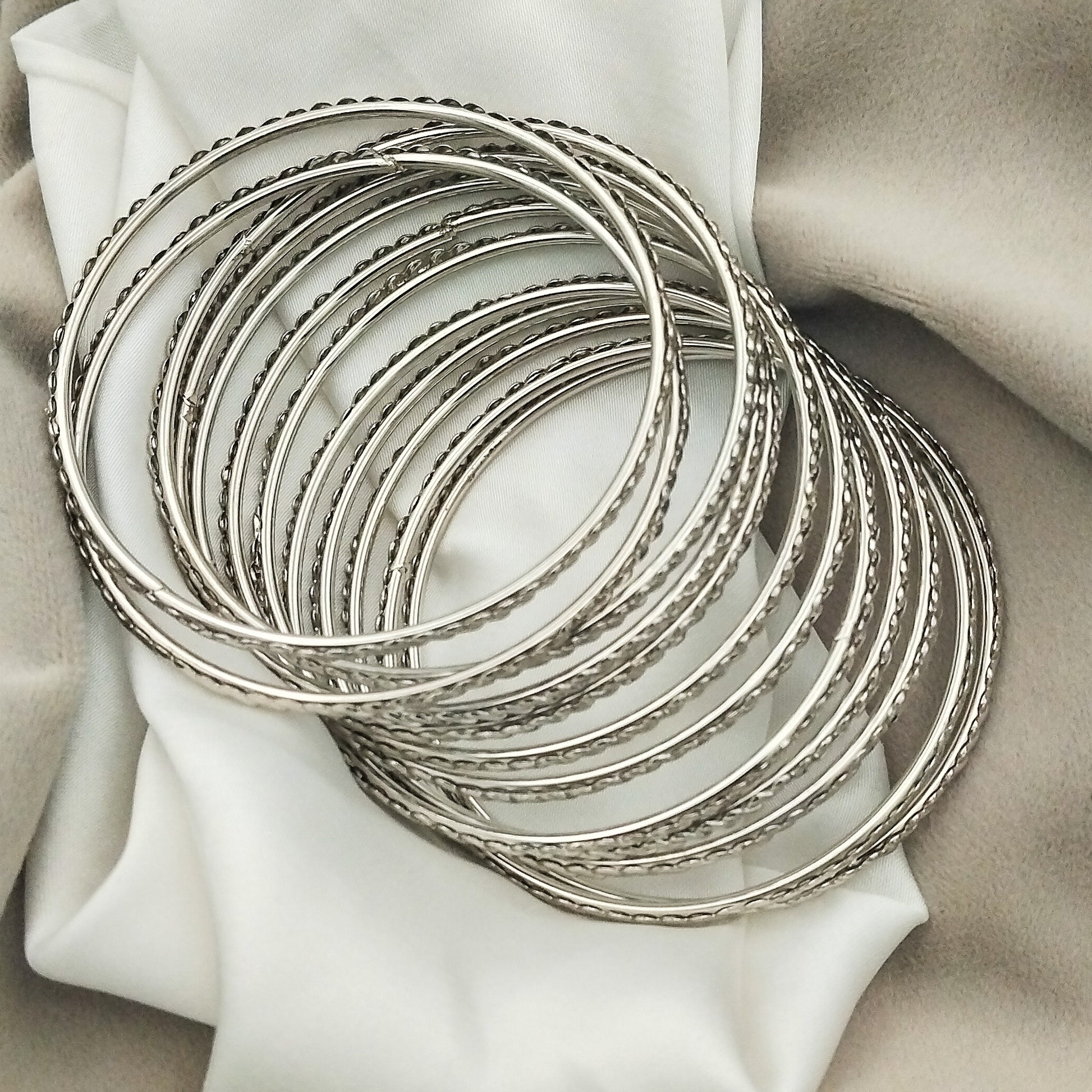 Aena Silver Bangles (Set of 12)