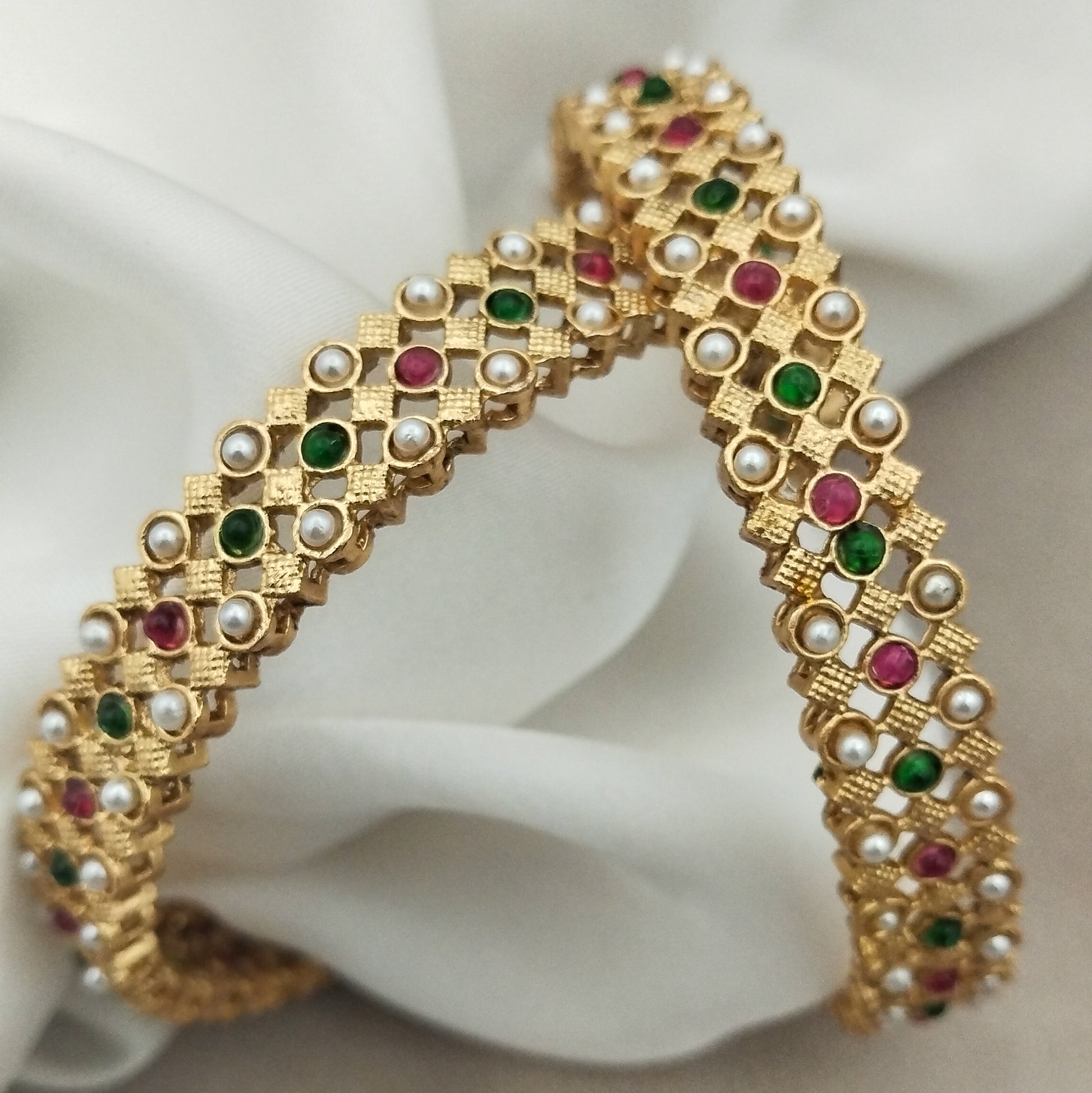 Inspired by regal opulence, these bangles celebrate love, passion, and timeless beauty. The delicate white pearls and red stones rest like treasures in a royal courtyard — a statement of grace for every festive moment.