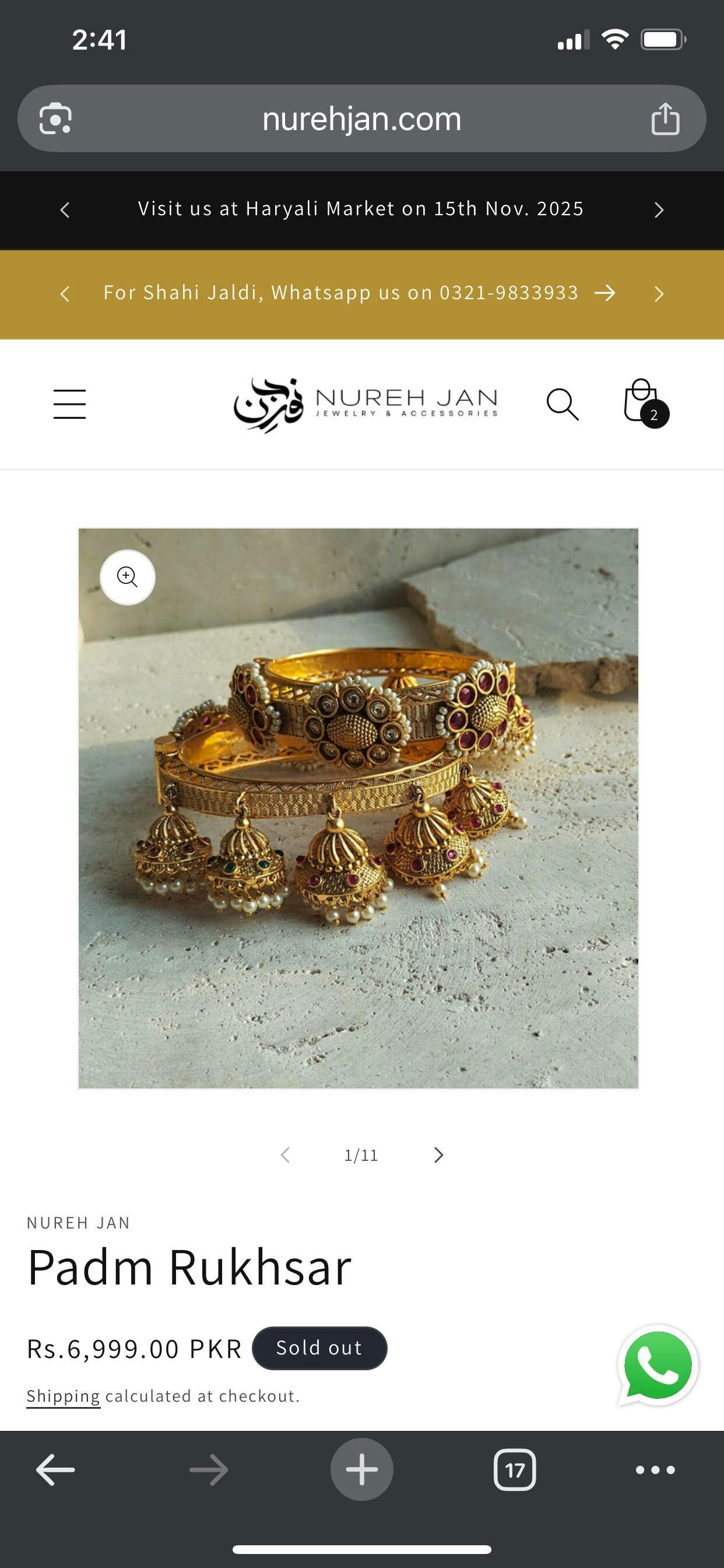 If Rajput queens had Instagram, these bangles would be trending under #MaharaniMood. Drenched in gold, swinging with jhumkay that have more movement than a PSL super over, and adorned with pearls shinier than a Tiktok beauty filter—Padm Rukhsar is history, but make it fashion. The floral engravings whisper of Mughal court poetry (before cancel culture arrived), while the Persian craftsmanship flexes like a well-edited LinkedIn bio. Whether you're ruling a kingdom or just the comments section, these openable bangles guarantee royal engagement—no algorithms needed.
