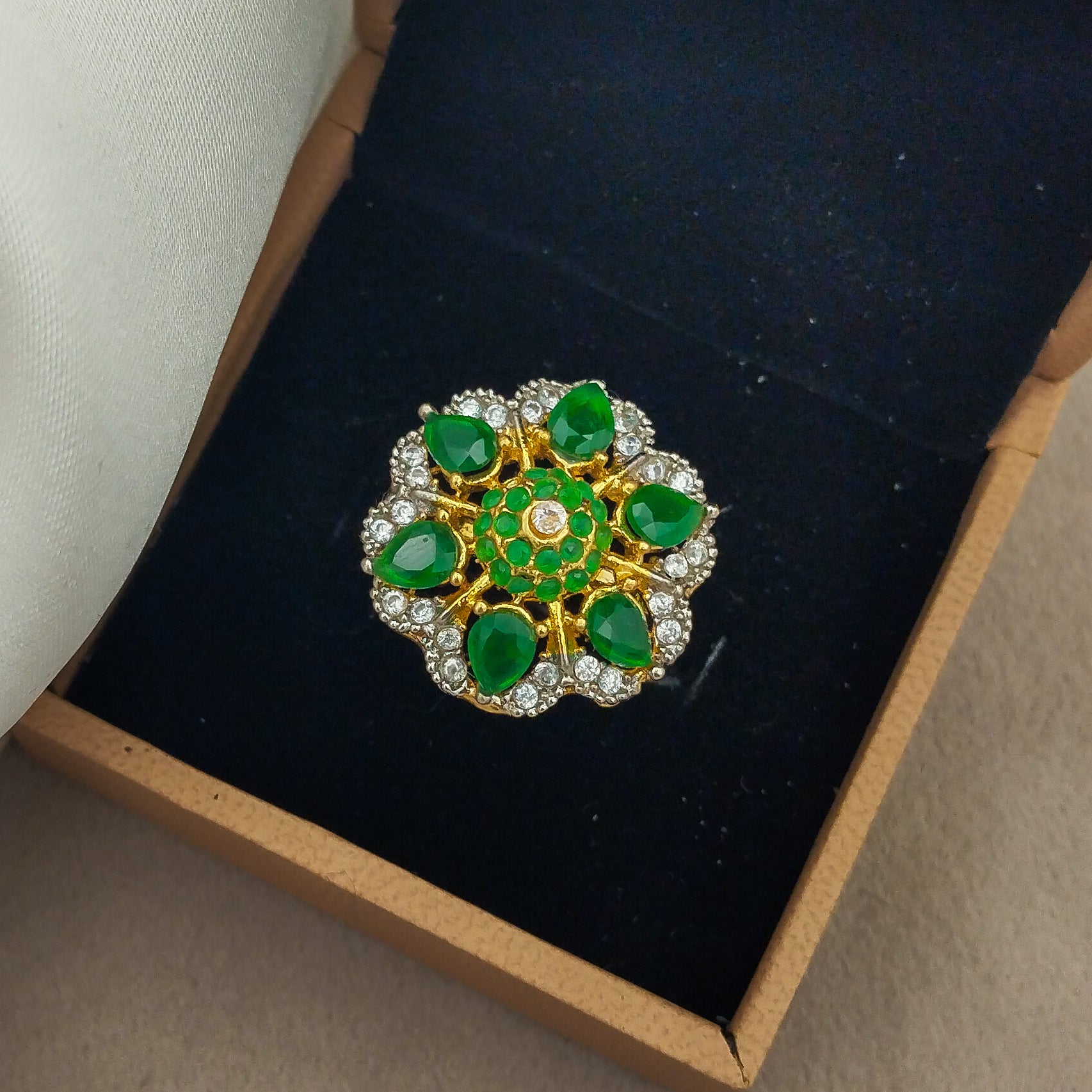 Shabnam-e-Timuri is the kind of ring that would have made Babar take a detour from his battlefield just to admire its craftsmanship. With a single-colored stone resting in a delicate floral embrace and zircons shimmering around it like a poet’s ode to a lost empire, this adjustable golden ring is a tribute to the Mughal-Persian aesthetic—grandeur with just the right amount of subtlety. Whether you're making TikTok history lessons, flexing on Instagram with your coffee, or throwing shade in a political meme war, this ring ensures your fingers remain as eloquent as Mirza Ghalib’s verses and as sharp as a well-timed political tweet.
