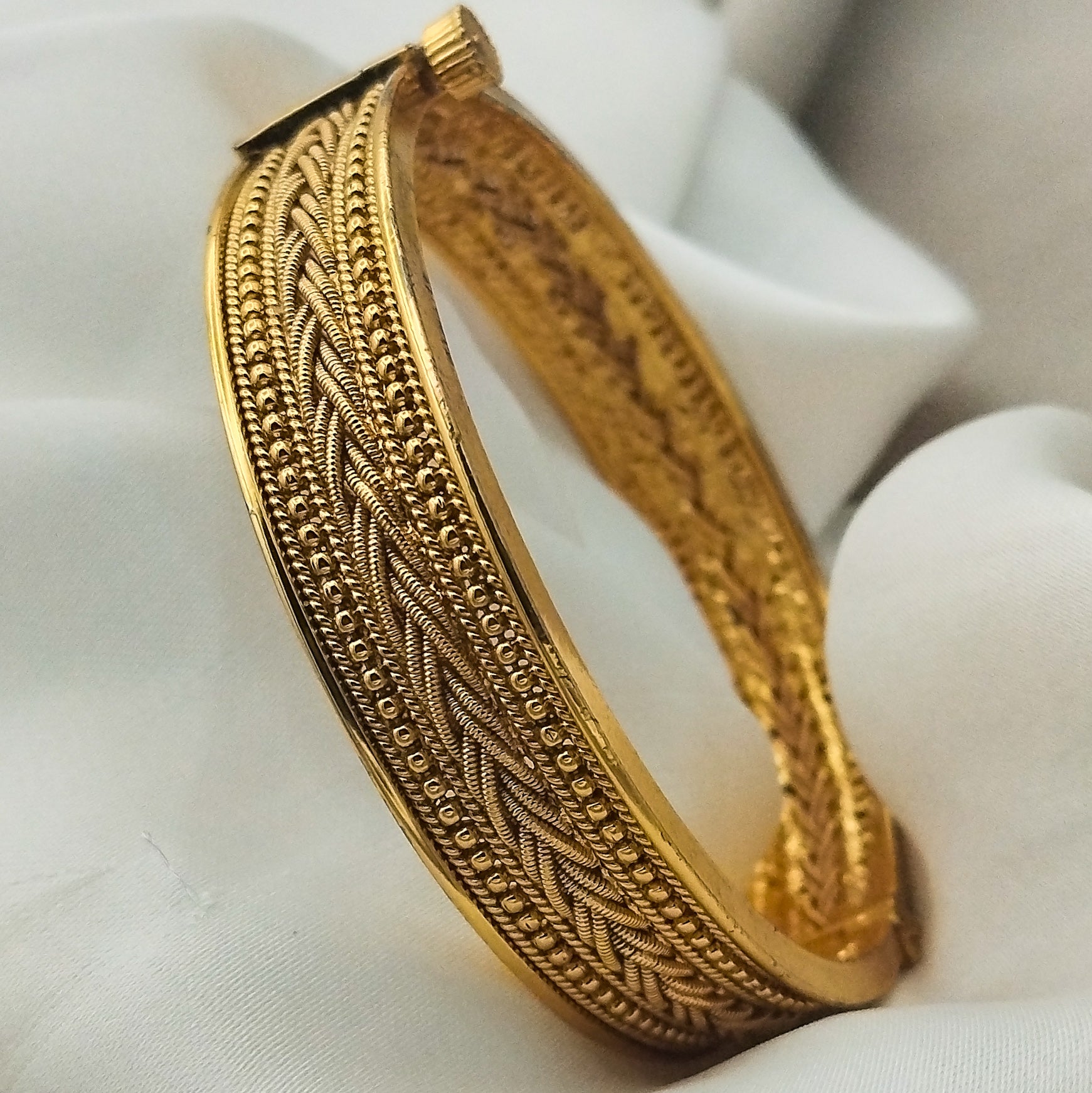 Made in India using high-quality copper alloy, these interwoven threaded bangles are gold-plated, tarnish-free, and designed to last. Their lightweight openable style ensures a comfortable fit — perfect for everyday glam or festive flair.